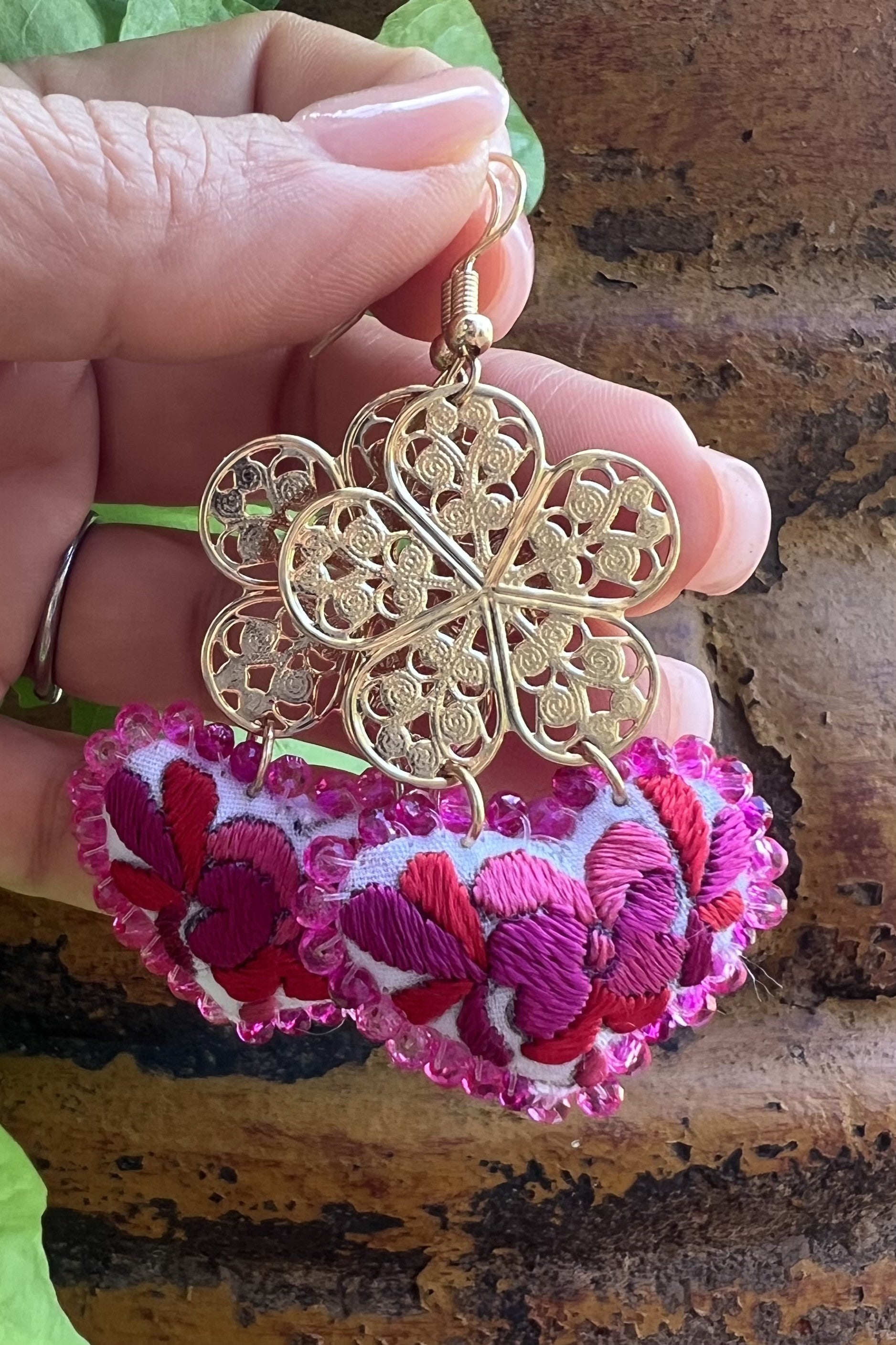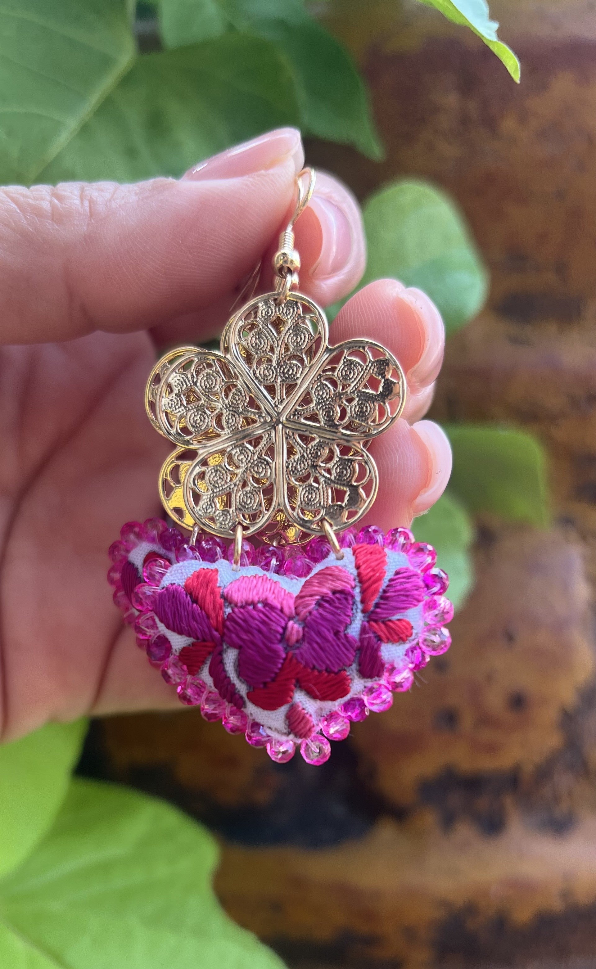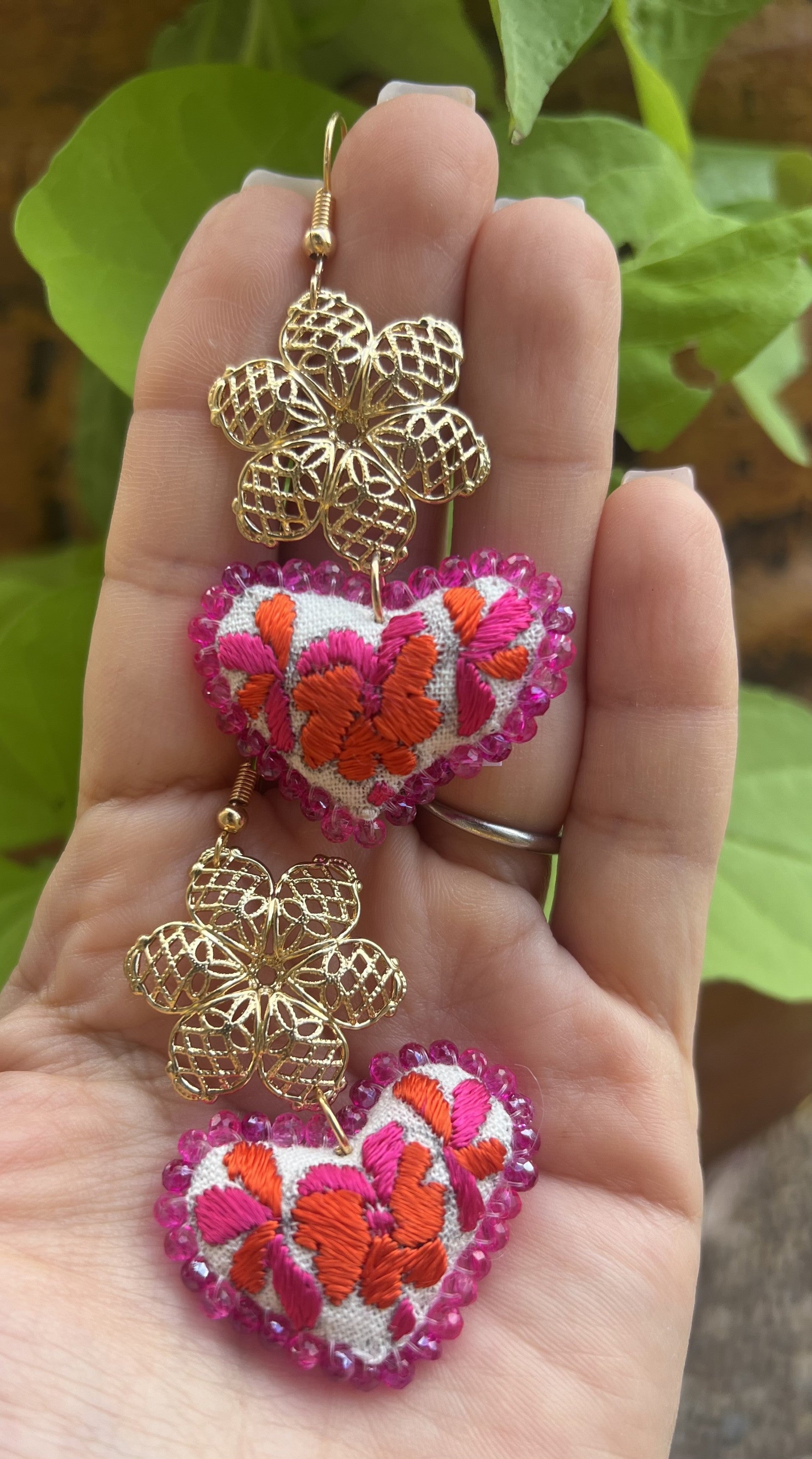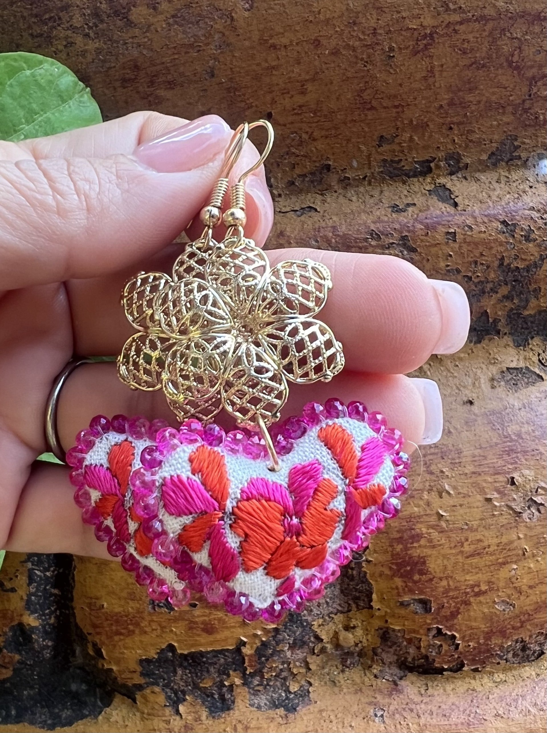 Embroidered Heart Earrings - Handmade Mexican Jewelry