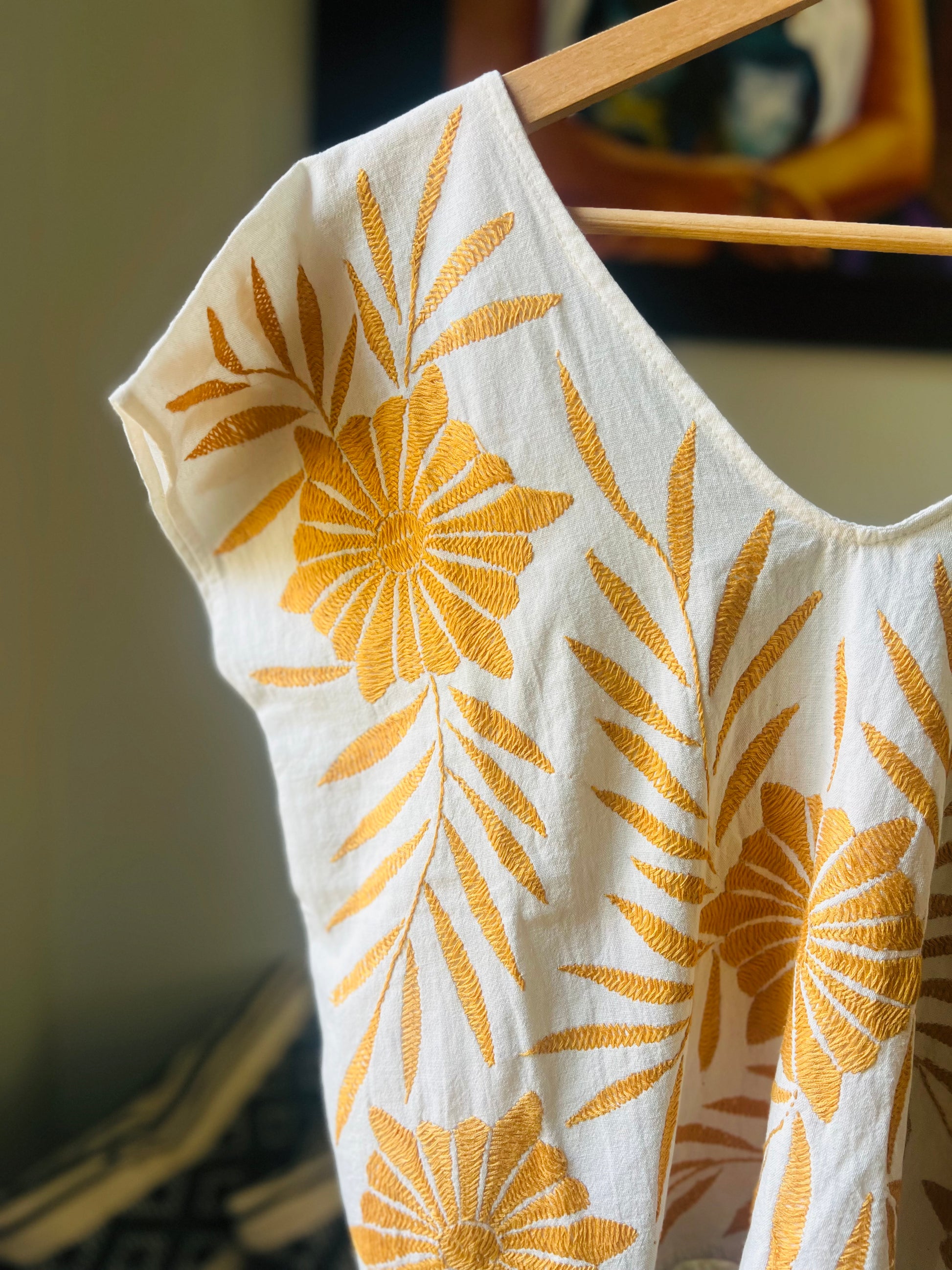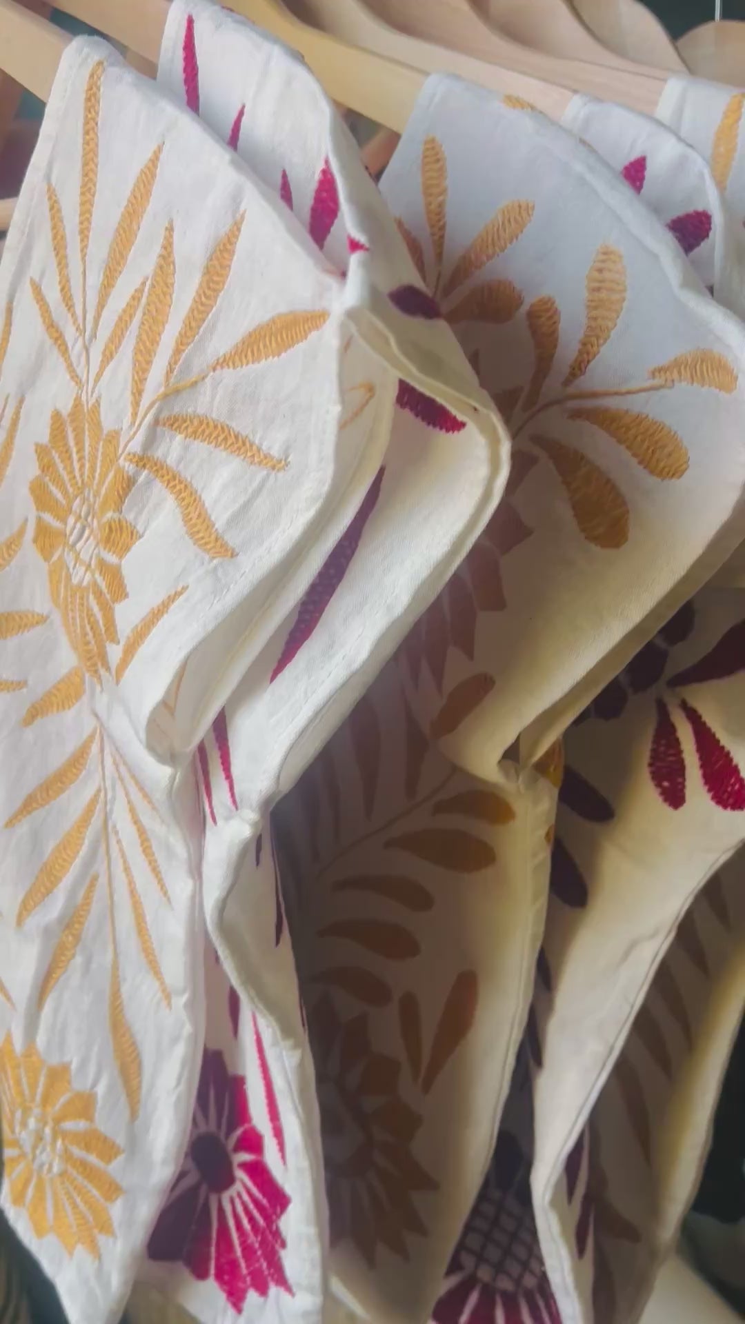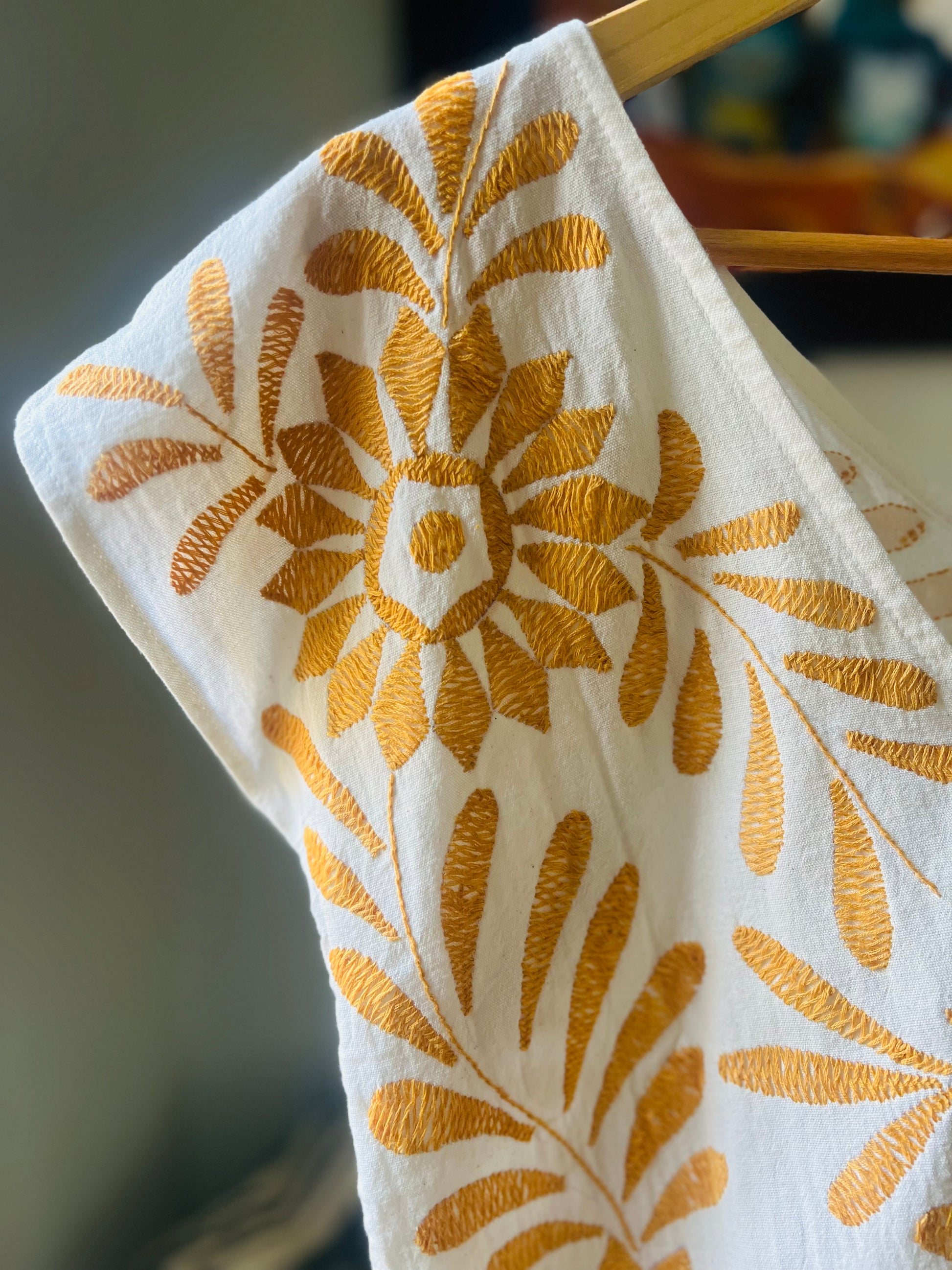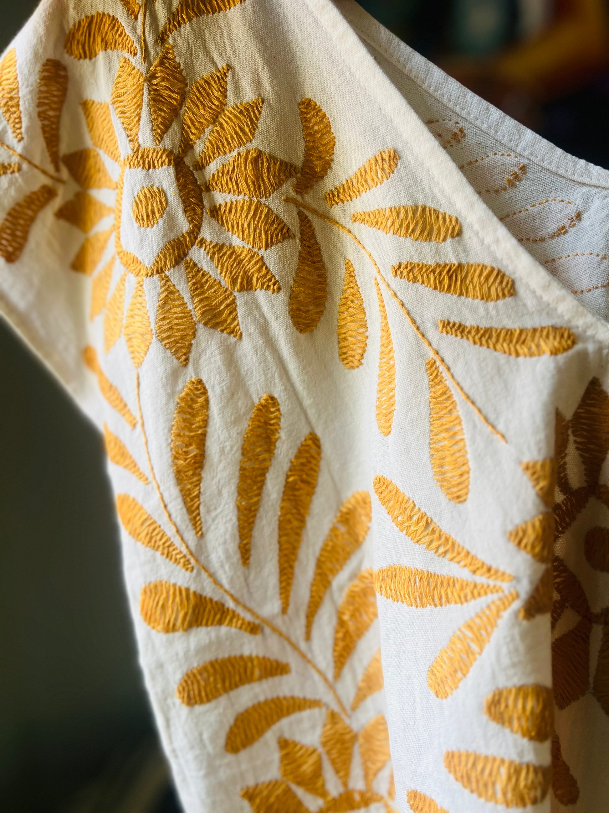 Infused with tradition and artisan soul, the Palmita blouse is a wearable celebration of Oaxacan heritage. Each piece is handcrafted by talented artisans from Los Zárate, Jalapa de Díaz, Tuxtepec, Oaxaca, featuring the traditional Palmita embroidery—an iconic motif inspired by native blooms and botanical elegance.